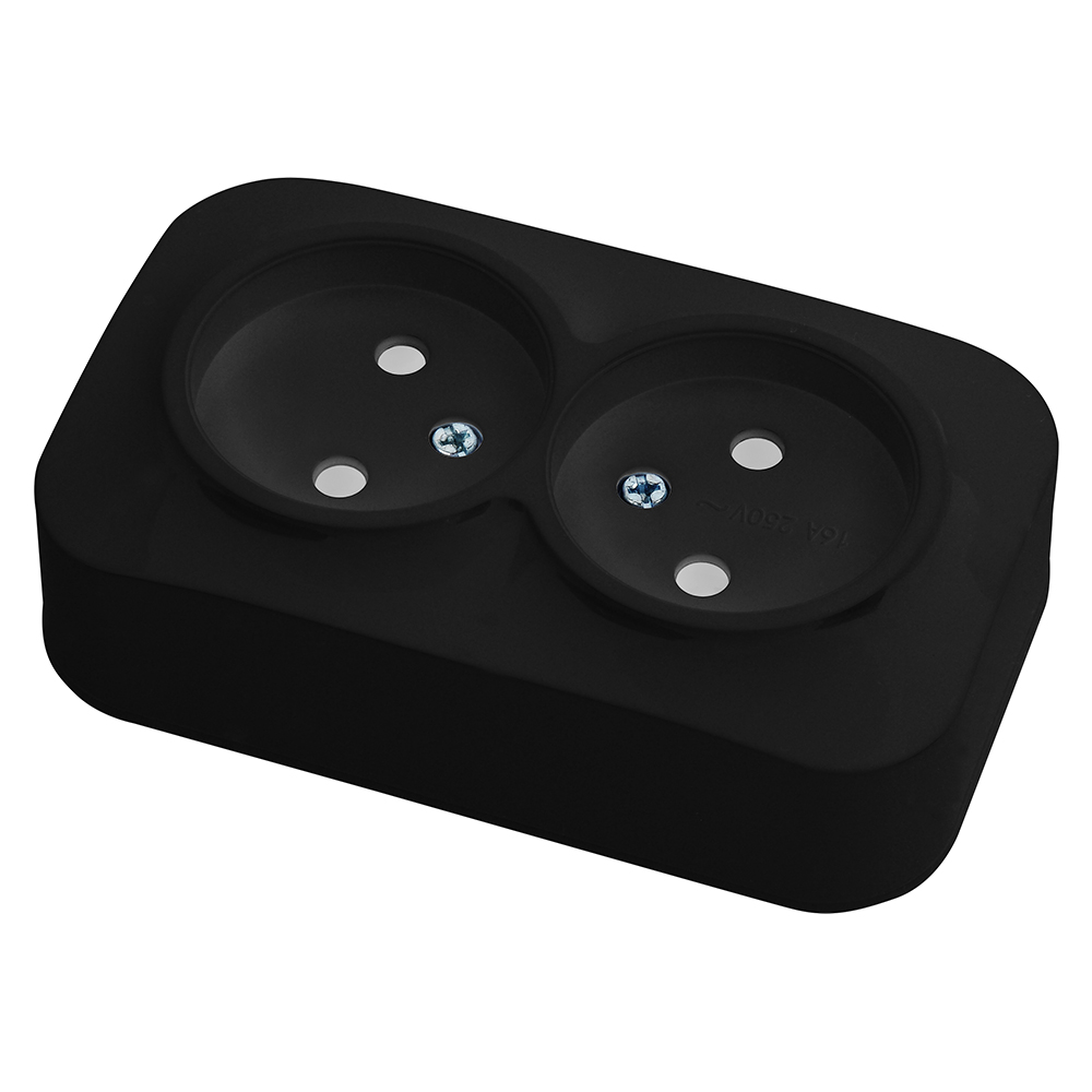 Розетка накладна 2-на чорна EVA
