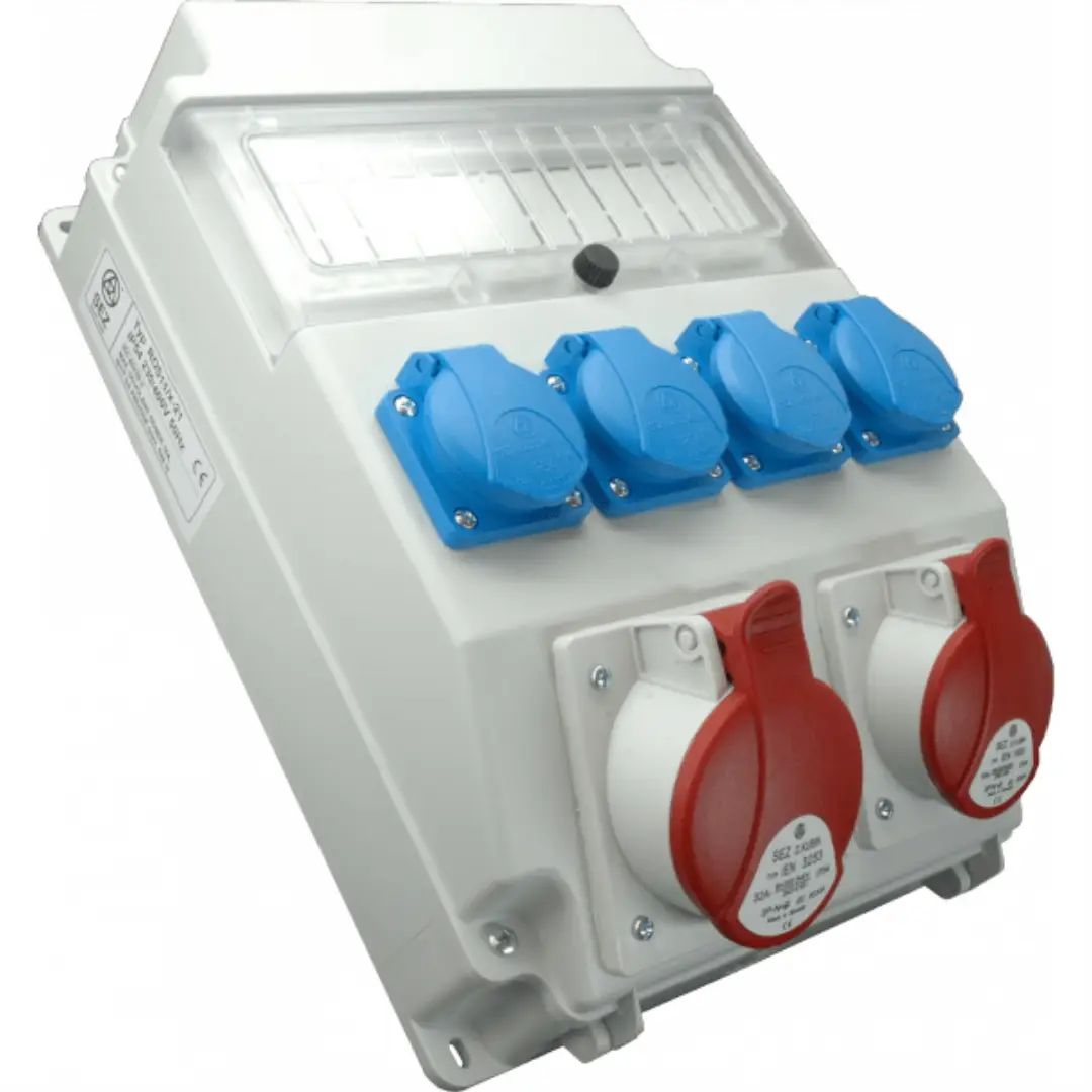 Щит зовнішнього монтажу SEZ на 11 модулів у комплектації з 4 однофазними розетками VZ16S (16 А, 250 В) та двома трифазними розетками — IEN1653 (16 А, 400 В) і IEN3253 (32 А, 400 В) — є потужним розподільчим пунктом для електропостачання різноманітного обладнання на будівельних майданчиках, у виробничих цехах чи майстернях. Велика кількість модульних місць (11 модулів) на DIN-рейці дозволяє організувати розгалужену систему захисту з індивідуальними автоматичними вимикачами або ПЗВ для кожної розеткової групи, забезпечуючи високу надійність та безпеку експлуатації.